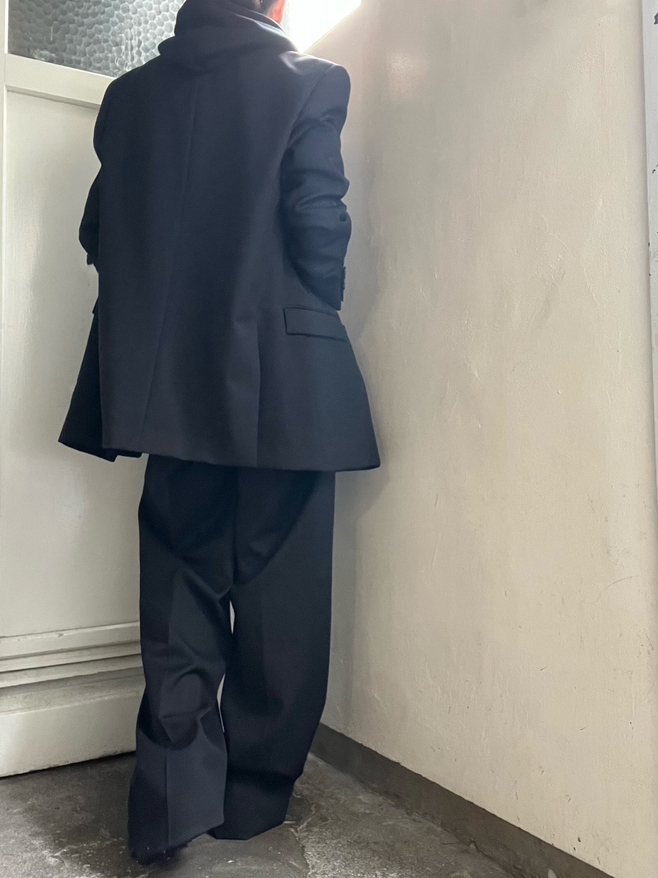 DRESSEDUNDRESSED-Gabardine Wool Loose Tailored Trousers (BLACK)