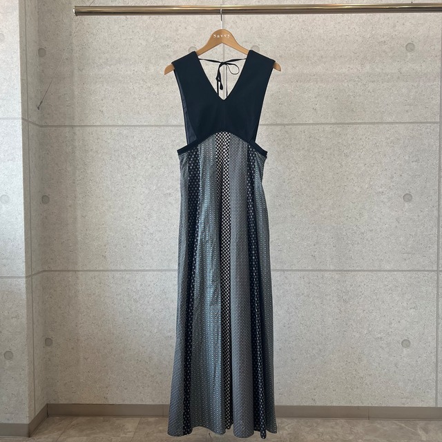 【品番】1011-0108-640 【カラー】black 【素材】(Fabric) polyester:100% (Lining) polyester:100% 【サイズ】F 【Size srec】 (F)着丈(フロント) : 約47cm・着丈(バック):約11cm・紐長:約81cm タフタ、レース、チュールをミックスしたフリルをあしらったジレです。 異なる素材感が生み出す立体的な表情が、装いに奥行きと華やかさを添えています。 首元や腰など、スタイリングに合わせて自由自在に着用が可能。 レイヤードするアイテム次第で印象が変化し、コーディネートの幅を広げてくれる一着です。